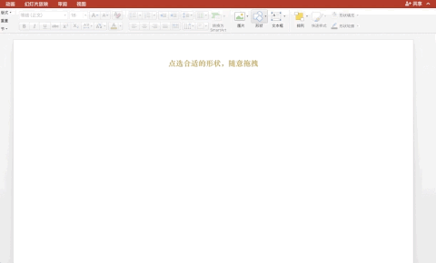 鼠标点选一个合适的形状,在幻灯片上拖拽,就可以得到一个矩形、一条线、一个箭头,一个世界。