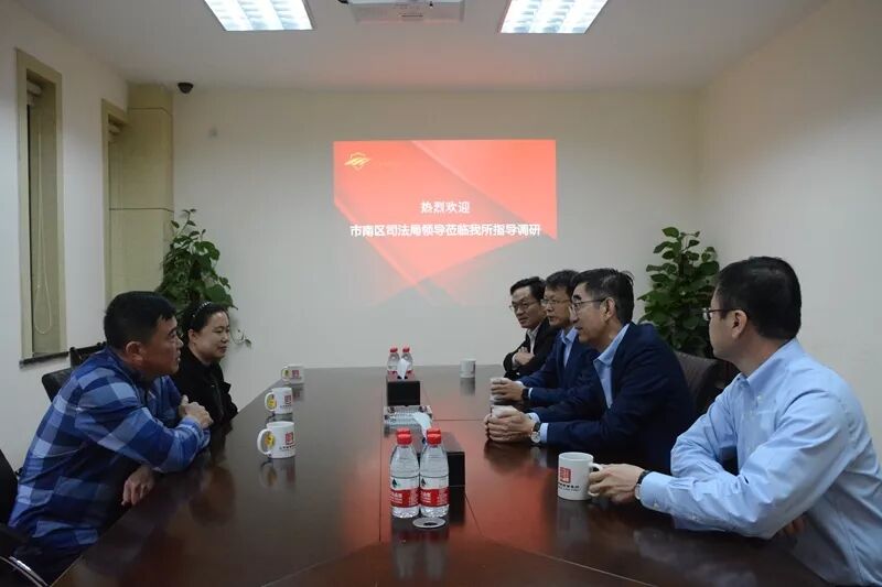 2018年11月6日上午,青岛市市南区司法局副局长李玉成、法律服务管理科科长张晓欢莅临山东海鲲律师事务所调研,我所党支部书记张林、主任王安田、管委会主任马安强、党支部副书记谢法圣陪同参加了本次调研。 张林首先向领导们介绍了律所的发展理念、运营模式、一体化管理以及大数据、可视化运用等基本情况。随后,王安田、马安强、谢法圣分别从律所的管理、党建情况及案件信息管理系统的运用三方面做了汇报。 领导们听取汇报后,对于律所所推行的公司制一体化管理、运用大数据、可视化分析案件、电子信息管理系统、年轻律师培养等制度及做法表示肯定,希望海鲲所坚持自己的理念,努力打造海鲲品牌,不断发展壮大,使律所再上新台阶。 李玉成副局长和张晓欢科长还视察了我所模拟法庭及案件信息管理系统、电子档案使用情况。