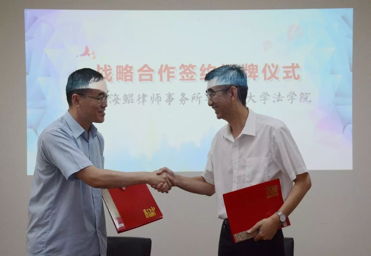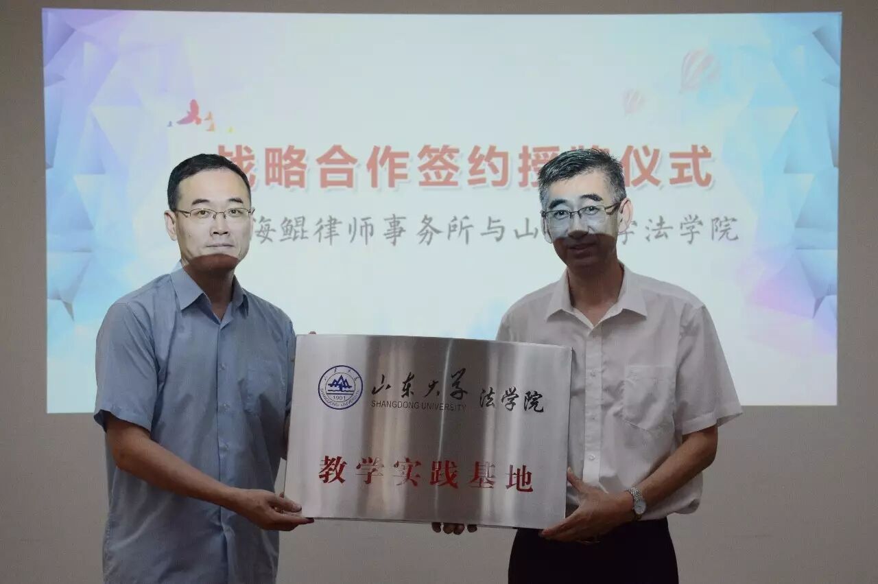 7月12日上午10时,山东海鲲律师事务所与山东大学法学院在海鲲所会议室举行战略合作签约授牌仪式,双方共建“教学实践基地”,并设立“海鲲律师奖学金”。